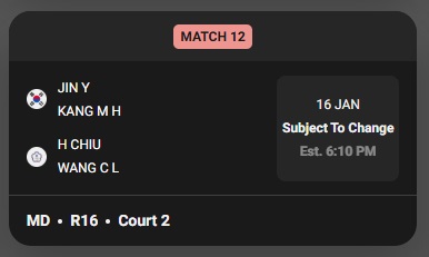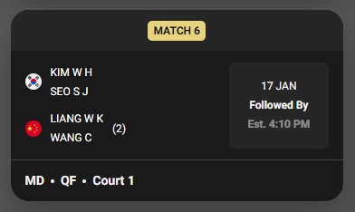 - 경기 유형: 남자 복식 (MD) 8강