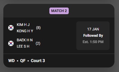 - 경기 유형: 여자 복식 (WD) 8강