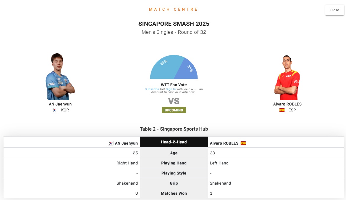 📡 WTT 싱가포르 스매시 2025 경기 생중계 안내