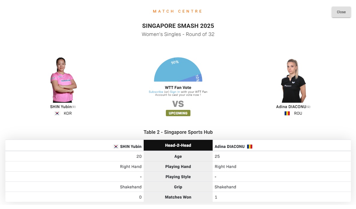 ✔️ 여자 단식 32강 – 신유빈, 루마니아 선수 상대로 승리 도전