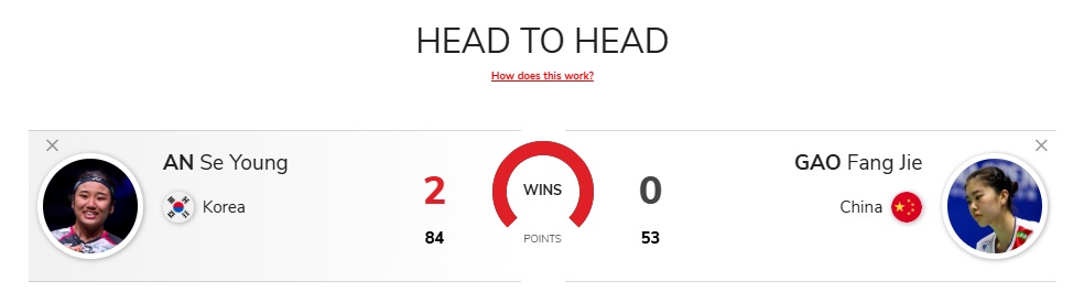 지난 8강전에서는 일본의 미야자키 도모카를 21-6, 21-9로 완파하며 결승까지 단 한 걸음만 남겨두었습니다.