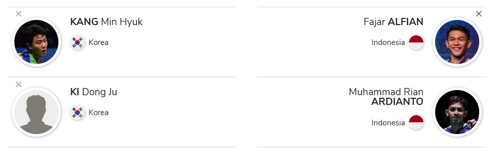| 강민혁·기동주 | 파자르 알피안·무하마드 아르디안토 (인도네시아) | 17:30 | 02:30 (3/14) |