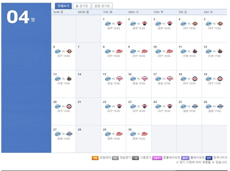 2025년 4월 삼성라이온즈 경기 일정 총정리