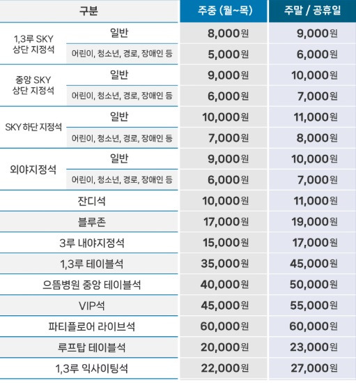 | 좌석명 | 주중 | 주말/공휴일 |