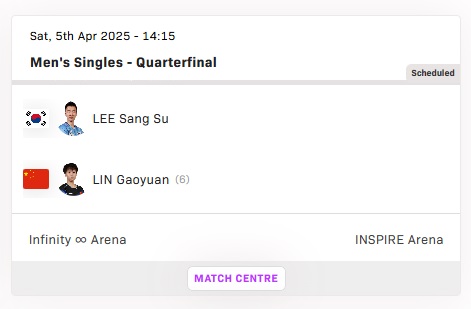 이승수 vs 린가오위엔, 운명을 가를 8강전