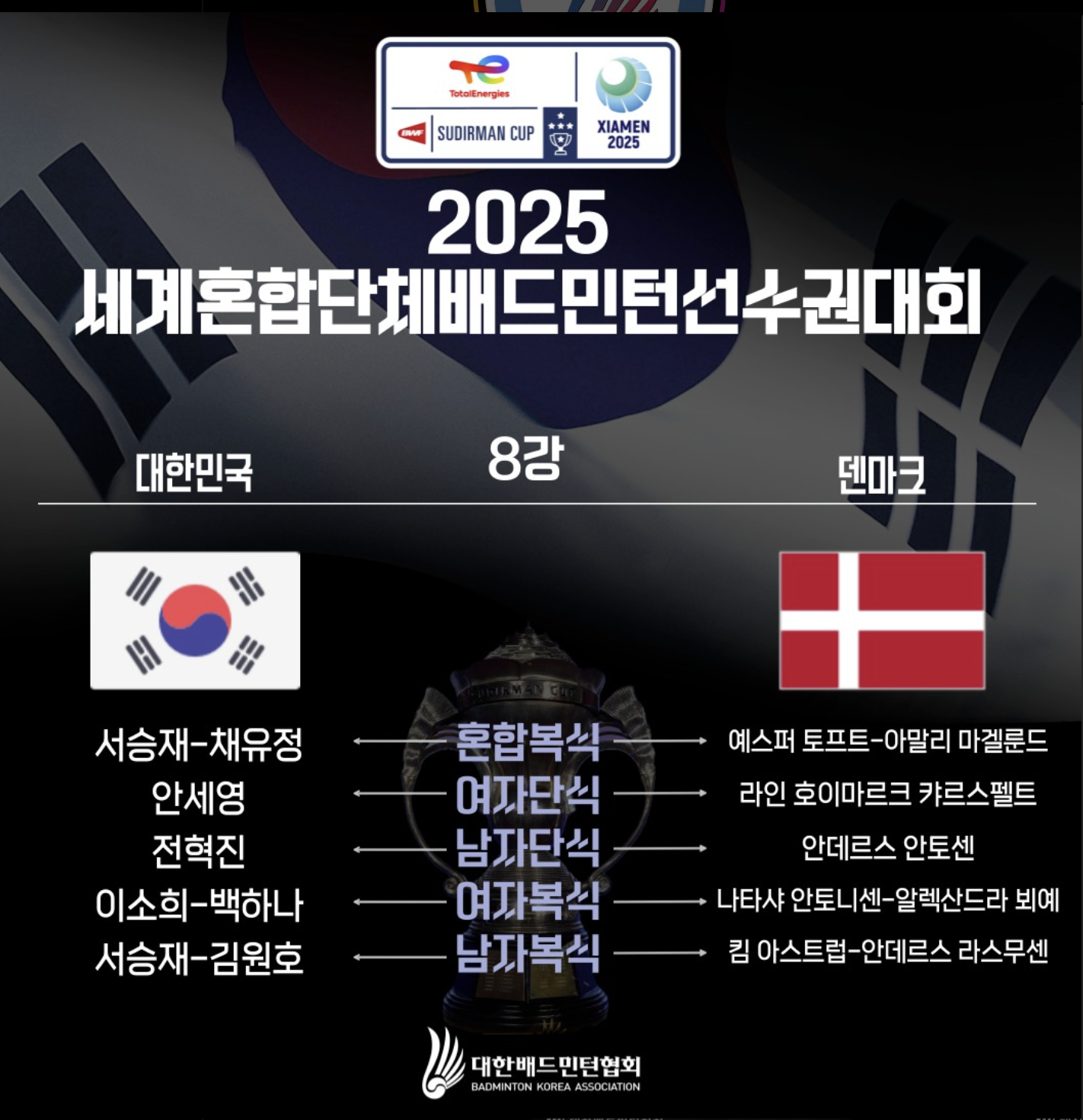 2025 수디르만컵 8강전, 대한민국 vs 덴마크 대결 임박!