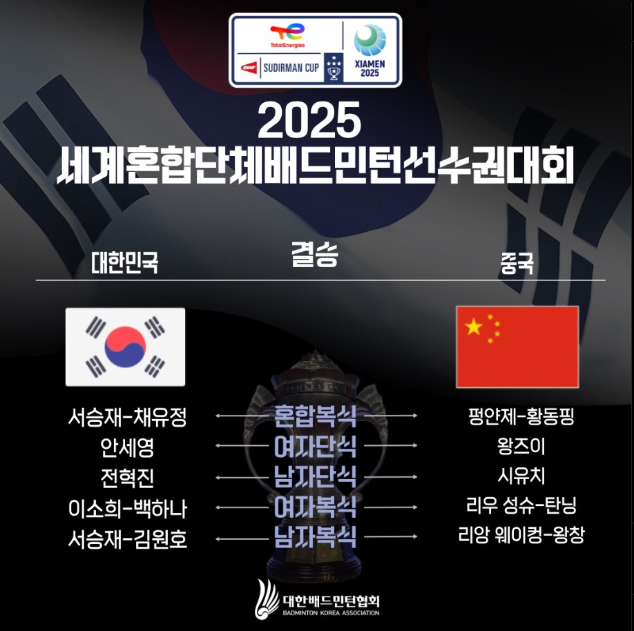 2025 세계혼합단체배드민턴선수권대회, 한국 vs 중국 결승 대진표